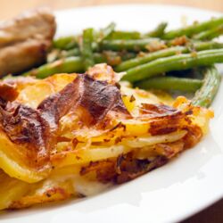 Kartoffelgratin mit pochiertem Zander und Broccoli