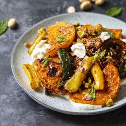 Ofenkürbis mit Feta und Kräuterdipp