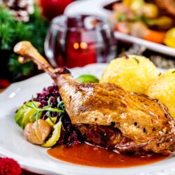 Gänsekeule mit Kartoffelknödel und Blaukraut
